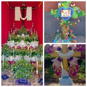 03/05/2024: en el Día de la Cruz, visitamos el Puerto de la Cruz y pudimos ver la creatividad, colorido, formas, etc. que se dieron a las numerosas cruces elaboradas y repartidas por todas las zonas. Nosotras también, como cada año, elaboramos nuestro propio monumento a la Cruz expuesto para ser visto por quien pasara por nuestra puerta. Este año, predominando el rosa y el verde, así como el papel como material principal. También, dada la cercanía al día 5, primer domingo de mayo, Día de la Madre, hicimos una pequeña celebración en honor a todas las madres del centro.