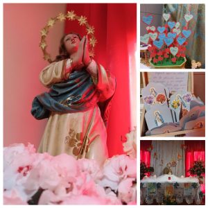 Desde el 1 al 31 de mayo: mayo es el mes de la Virgen María y, este año, nos propusimos celebrarlo cada día. Realizamos actividades de todo tipo ya fuera en los jardines, en la capilla, en el comedor, etc. Realizamos bailes, puzles, crucigramas, ofrendas, lecturas, etc. Nos estrujamos la cabeza para que cada día fuera algo distinto y, aunque con formas diferentes, con el objetivo común de celebrar poniendo a la Virgen María al centro. Aquí solo un pequeñísimo ejemplo: